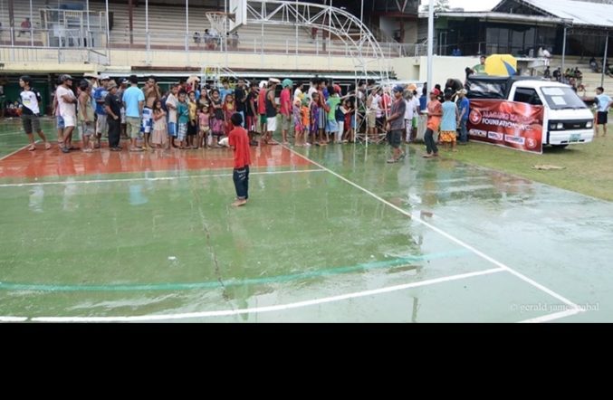 NO SUNSHINE. Evacuees line up to get their share of relief goods amid rains at the CPG Sports Complex. (Photography by Gerald Cabal)
