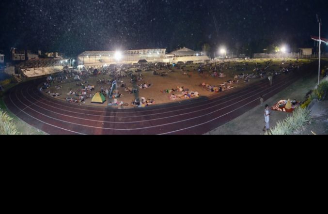 SAFER OUTDOORS. Even amid a drizzle, some city residents opt to rest at the CPG Sports Complex as aftershocks abound. (Photography by Gerald Cabral)