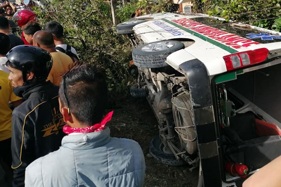 The ambulance, owned by the Sierra Bullones local government, was transporting a patient from the said town to the Governor Celestino Gallares Memorial Hospital (GCGMH) in Tagbilaran City.