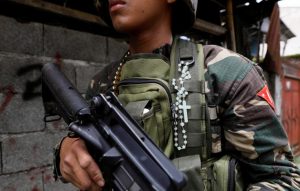 Rosary is pictured on the uniform of government soldier fighting Maute group in Marawi Previous Image Next Image